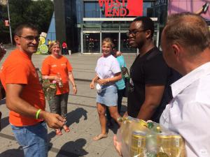 Hűsítő italokat osztottak a nagy melegben